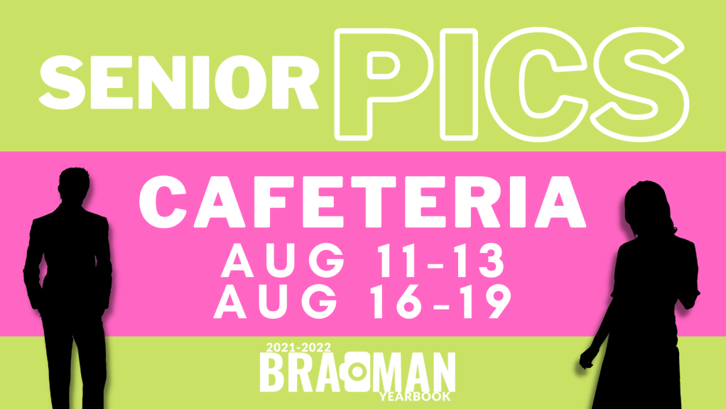 Thank you to those seniors that took advantage of the July dates. The majority of you should get these taken between August 11-19. You must have the formal senior picture taken with Prestige. You will create your username and password when you visit their website. You can also call 800.749.2796.