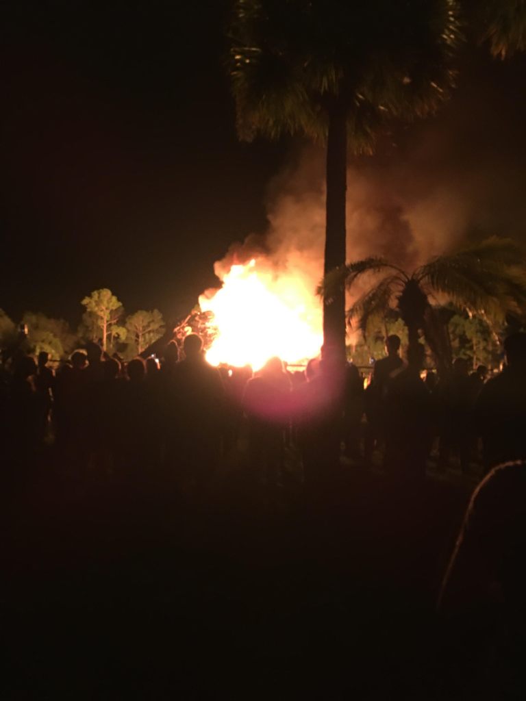 Guess what week it is! Homecoming Week. Students all over campus are dressed in Red White and blue. Several students have been participating in the dress days in school. Oh and the homecoming dance and other activities. Here in Okeechobee we have a tradition called the bonfire. During this tradition our seniors make teams with their friends, then they all collect wooden pallets and return them to the school. The pallets are counted to see which team gathered the most, after figuring this out, whichever team gathered the most pallets will be able to light the bonfire that night along with the most spiritied team. The senior students are able to go on the road across from the fire. The rest of the students hang out on the track and the football feild. “This was the first bonfire ive been too and it is one for the books, i could literally feel the heat off of it on the track” Caitlyn Rocconella(23) said.