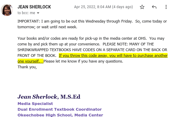 As the school year comes to a close for the Okeechobee High School students the college classes are just beginning. The summer semester is split into summer A and summer B is a period where the classes will be much faster only taking 6 weeks per class. “I am taking two classes in summer A and one in summer B,” Tori Trent(10) said. Some classes need books that must be retrieved from the media center/library. Although Ms. Sherlock is not going to be at the school from Wednesday through Friday this week, she will be back next week. Some classes need a code which will also be provided by the school (Do not throw this code away until it is used). “I have not gotten my books yet,” George Seca (10) said. Students can take a maximum of 4 classes during this period however it is recommended that students only take 2-3 classes in these semesters. Classes will be much harder than the regular fall and spring semesters due to the shortened time and the increased workload over less time.