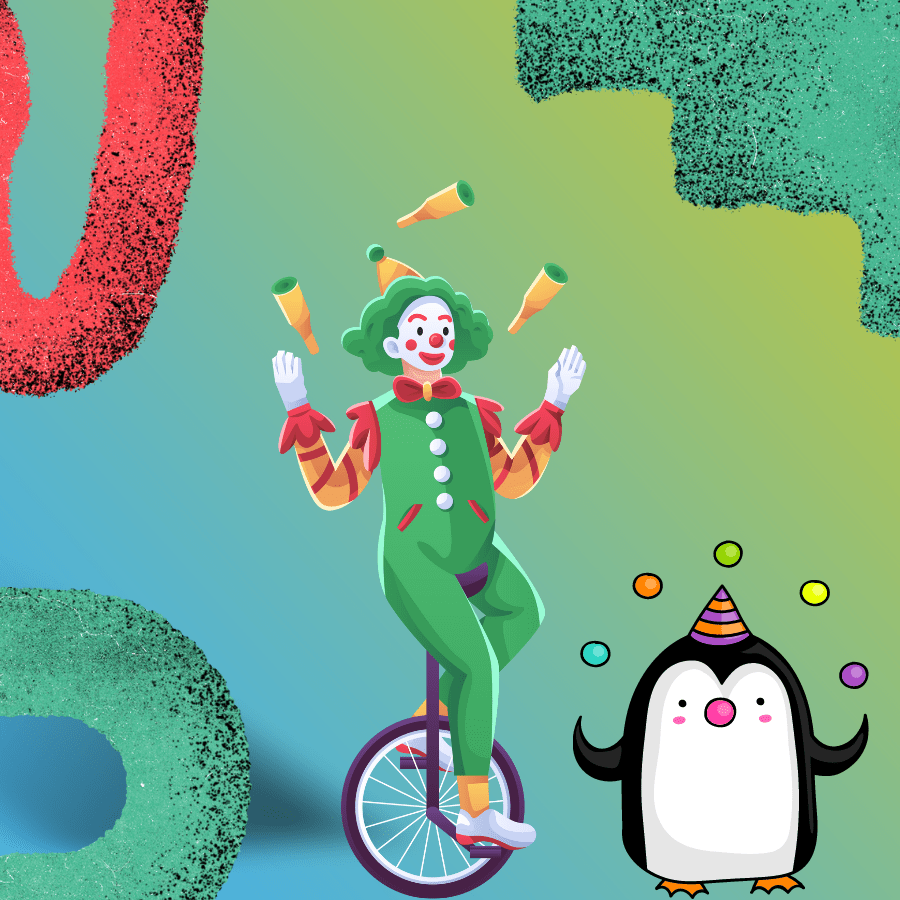 You can often see clowns juggling while doing other tricky skill. They will do anything to entertain people at the circus.