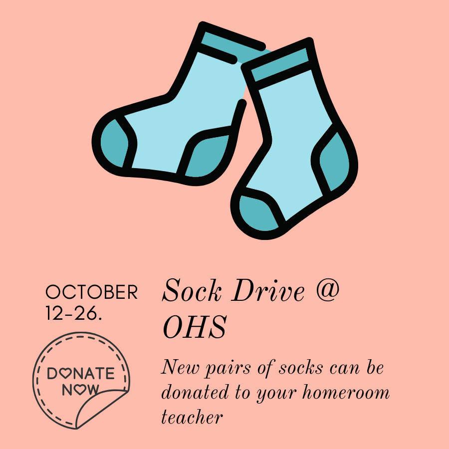 The sock drive started on October 12 and will continue through October 26. The socks will be collected in your homeroom class. For Beta members, this will count as a fundraising credit if you turn in four pairs of socks. The socks collected will be given to elementary schools in Okeechobee.