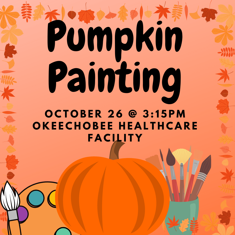 The Beta club pumpkin painting project will be held on October 26 at 3:15 p.m. The location of this project will be the Okeechobee Healthcare Facility. You need to bring your own SMALL pumpkin to decorate, but all the painting supplies will be provided.