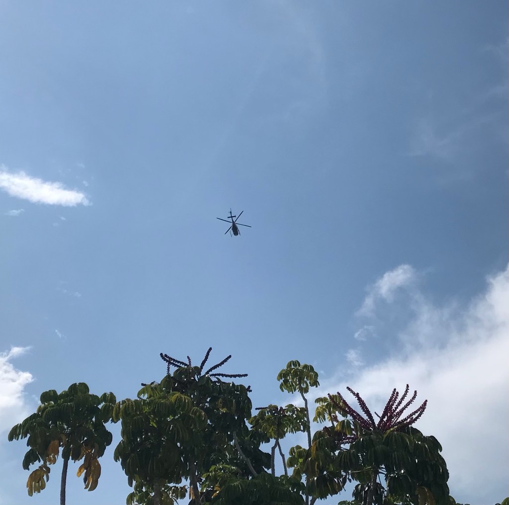 A helicopter is on its way to the Okeechobee airport. It is important that the Helicopter gets to its destination or the people won’t be very happy with the pilot.