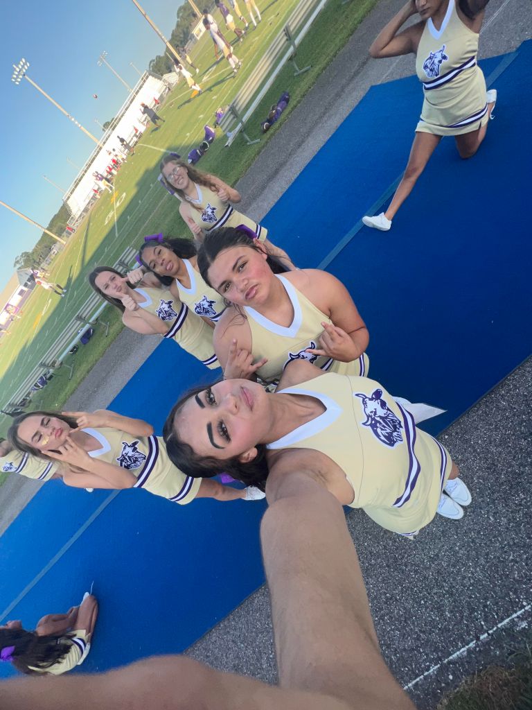 On 9/14 the Okeechobee High School had their very first pep rally. At the pep rally the cheerleaders demonstrated what games the students were going to be playing and kept them on track while they were playing the games. The football game was a home game against South Fork. This was the Okeechobee Brahmans Go Gold game. The cheerleaders wore their gold uniforms and had gold face paint on them. At the beginning of the game the cheerleaders were warming up stunts. In the third quarter the cheerleaders went to play games with the South Fork cheerleaders. When they came back they threw gold footballs into the crowd. They had a slingshot and they were throwing shirts at the game.