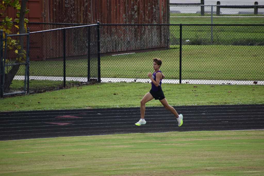 Landon Arrants running ahead of everyone else. He is doing this to win the race against them.