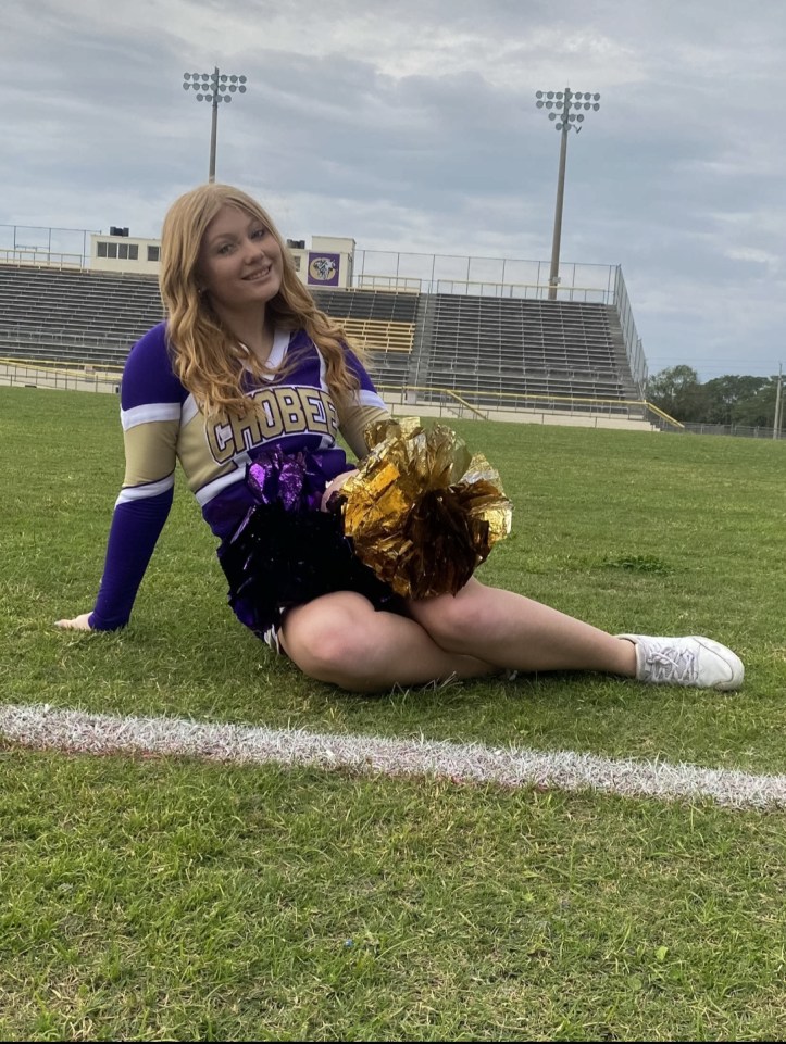 Does Taylor Arnold ring a bell? She is a 5’4” Varsity senior cheerleader at Okeechobee High School. She has been cheering for two years and is currently team captain. Arnold loves being able to represent Brahman PRIDE throughout the season. When she’s not cheering for the school she likes to read, shop, and hang out with friends. She looks up to Joe Burrow, a football quarterback playing for the Cincinnati Bengals. “Cheering at my first game and seeing my friends and family cheer me on from the stands is probably one of my most memorable moments cheering for the school,” Arnold said. She wants to go to college and become a radiologist.