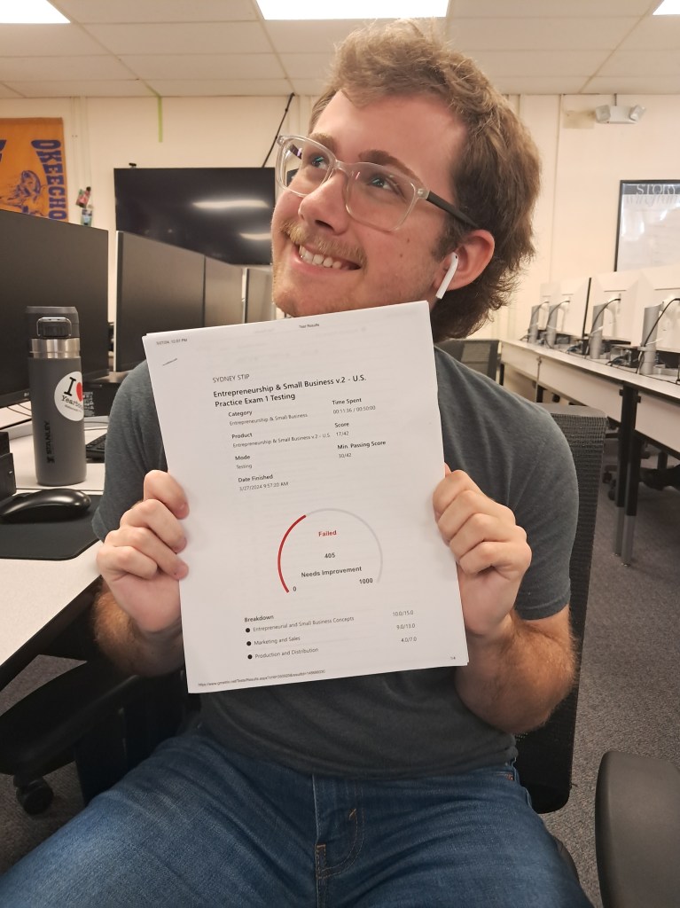 Jacob smith holding a paper in Mr. Pungs classroom.
